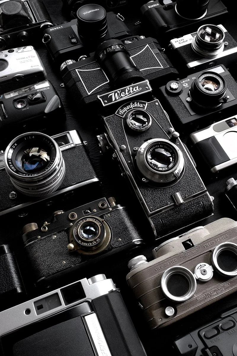 Das Besondere an Vintage Kameras ist ihre technische Präzision in funktionell-schönem Design. Diese Sammlung umfasst Lieblingsstücke aus über 80 Jahren Fotografie-Geschichte. Gepflegt in Mechanik und Optik werden ausgewählte Modelle vorgestellt.